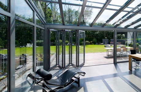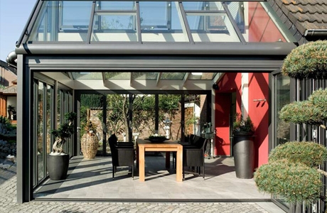 Unsere Glas-Faltwände von Solarlux ermöglichen die maximale Raumöffnung ohne störende Elemente.