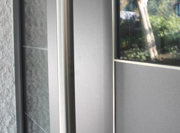 Haustür GRAUTE THERM 90 mit Aluminiumfüllung, Edelstahldekorrahmen außen,