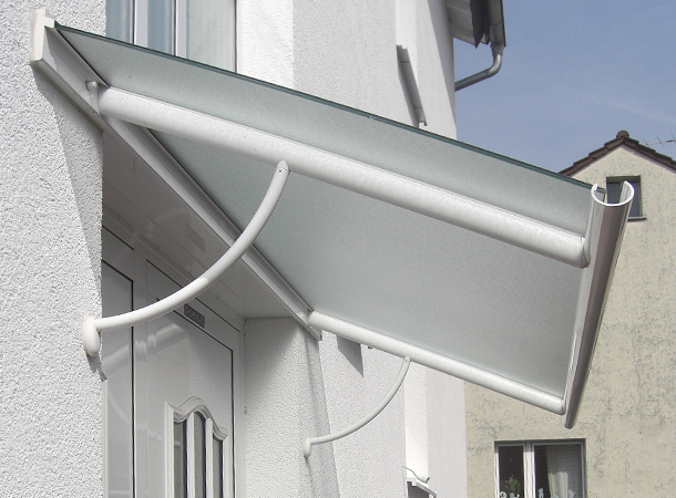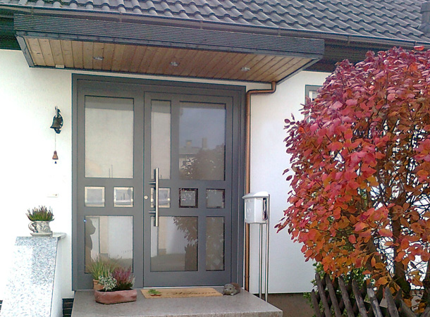 Produkt: Aluminium-Haustür,TEBAU-Vordach, Aluminiumkonstruktion Treppenhaus
