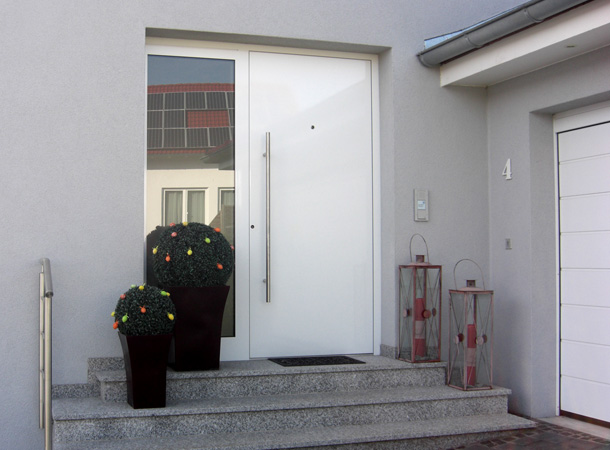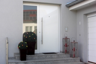 Gleichzeitiger Austausch der Haustür, Aluminiumtüranlage mit eingesetzter Füllung, 7-fach Verriegelung