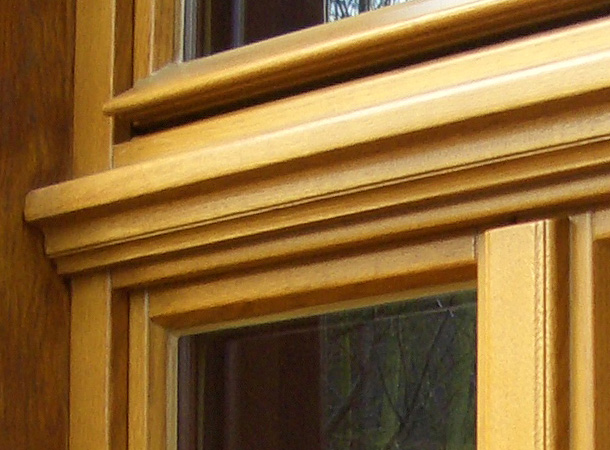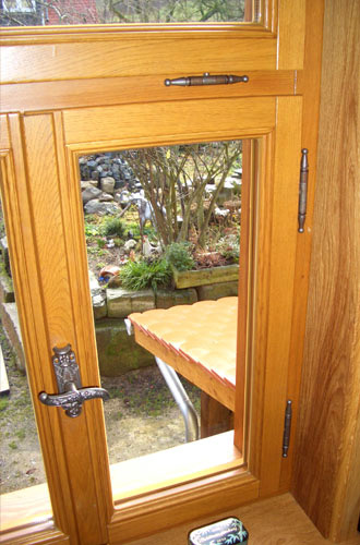 Holzfenster im Retrolook, profilierte Kämpfer und Zierprofile,